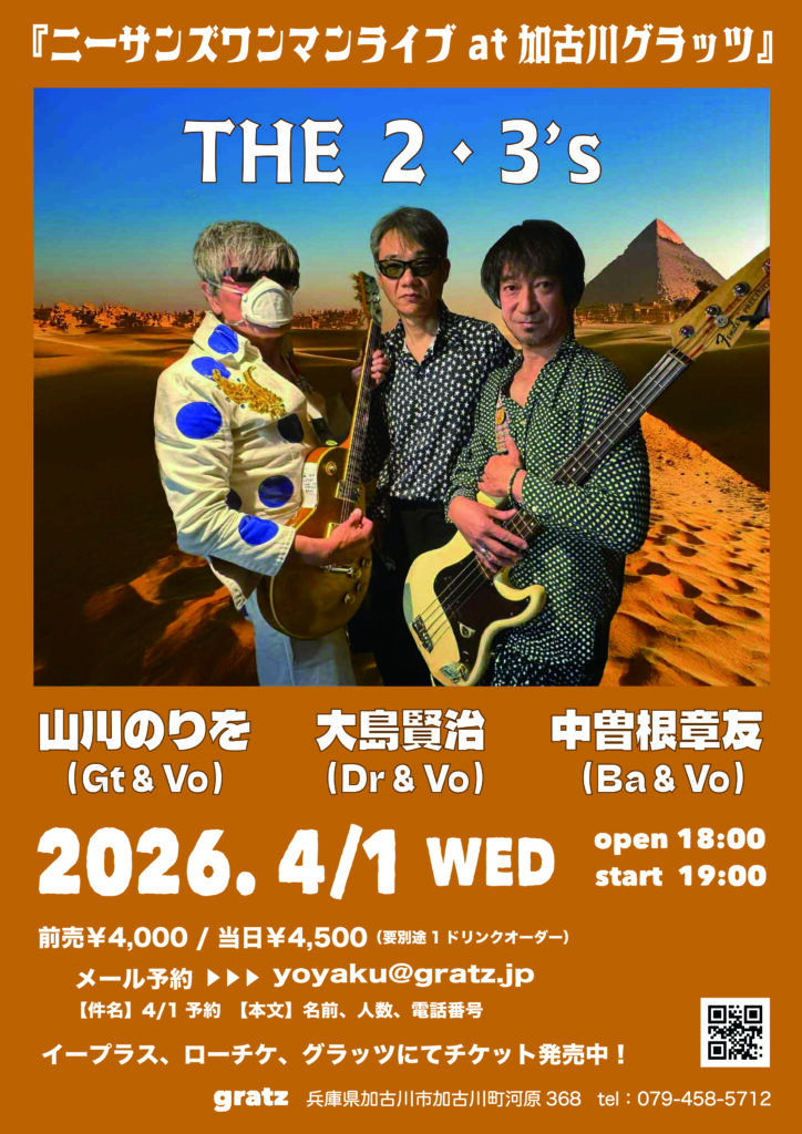 - 2026年 4月 1日 (水) THE 2・3’S(ニーサンズ)