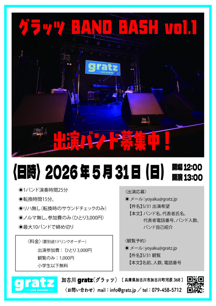 - 2026年 5月31日(日) 『グラッツ BAND BASH vol.1(出演バンド募集中!)』
