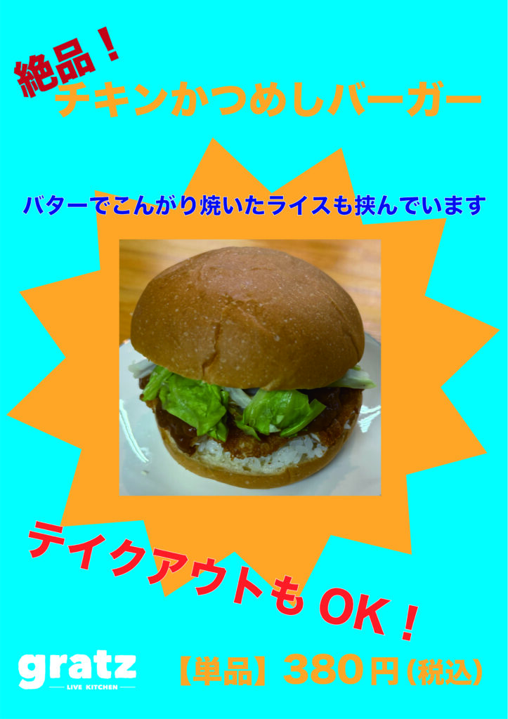 ◉チキンかつめしバーガー [単品] 380円(税込) ※テイクアウトもOKです!