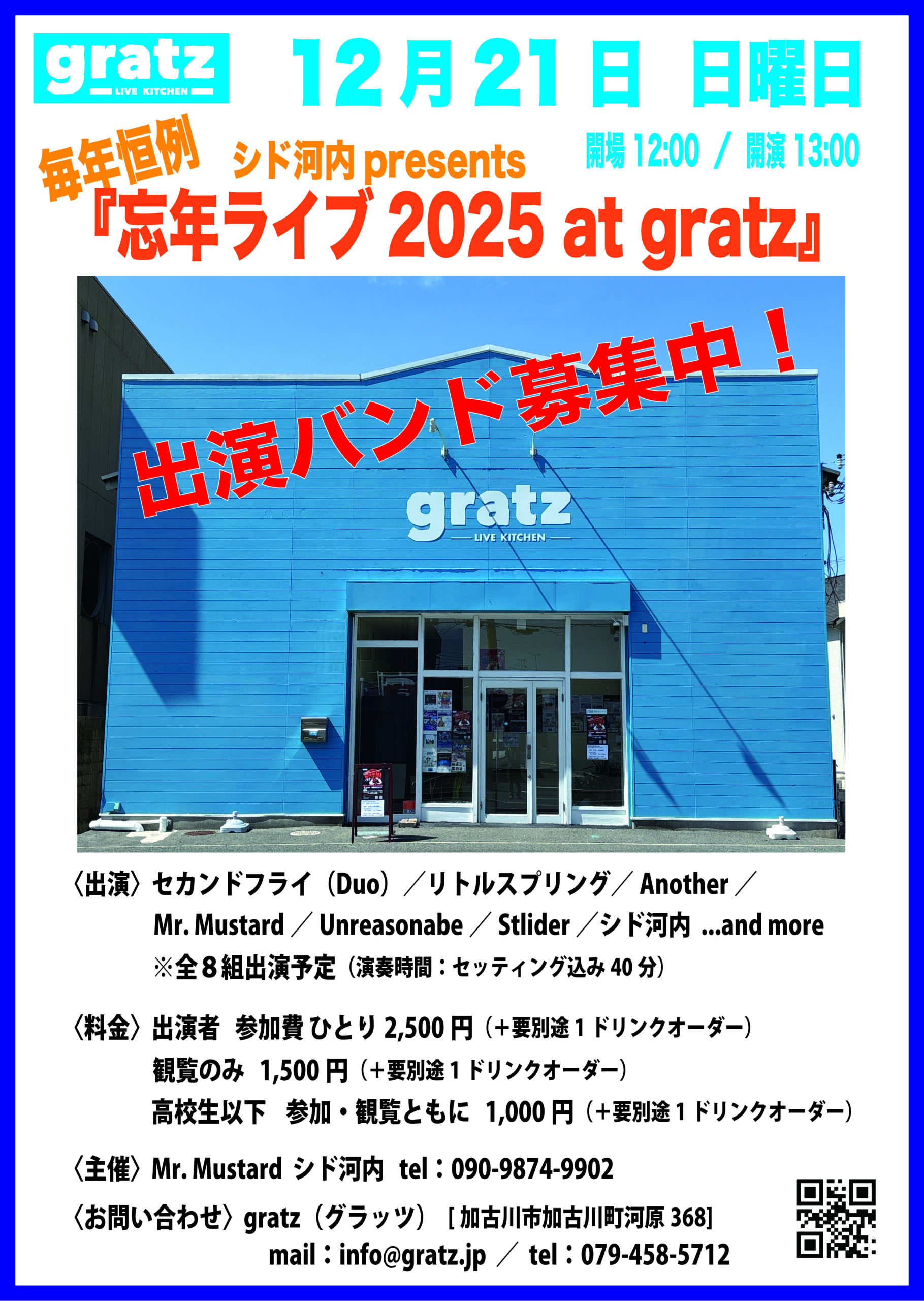 2025年12月21日(日)シド河内presents『忘年ライブ2025 at gratz』