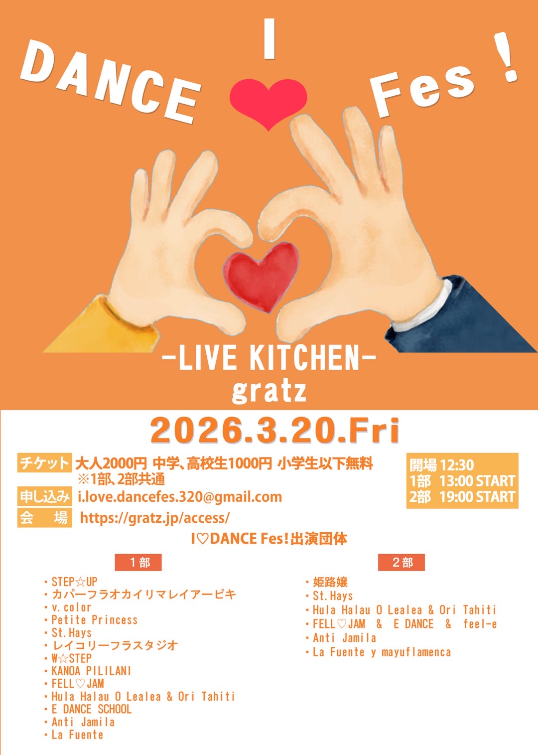 2026年 3月20日(金祝)『I ♡ DANCE FES! vol.2』 2026 2/13 LIVE情報 PICK UP! LIVE情報 PICK UP! よかったらシェアしてね! URLをコピーしました! 2026年3月14日(土)風ノ翔馬 2025年12月19日(金)梅谷陽子 × JEWEL 関連記事 10月5日(土)ダイアモンド☆ユカイ【SOLD OUT!】 2024年8月23日 10月9日(水)みわトシ鉄心 2024年8月23日 10月10日(木)木村充揮 2024年8月23日 10月11日(金)三宅伸治 2024年8月23日 10月13日(日)THE NEATBEATS × GASOLINE 2024年8月23日 10月17日(木)知久寿焼 2024年8月23日 10月27日(日)ホフディラン 2024年8月23日 10月29日(火)小堀裕之(2丁拳銃) × 旭堂南歩 2024年8月23日