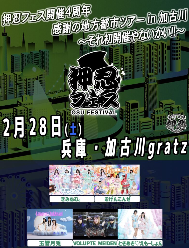 〈出演〉むげんこんぜ/VOLUPTE/MEIDEN/きみねむ。/玉響月兎/ときめき♡えもーしょん ...and more!! ※詳細は今月末お知らせいたします! 〈主催〉合同会社押忍 -