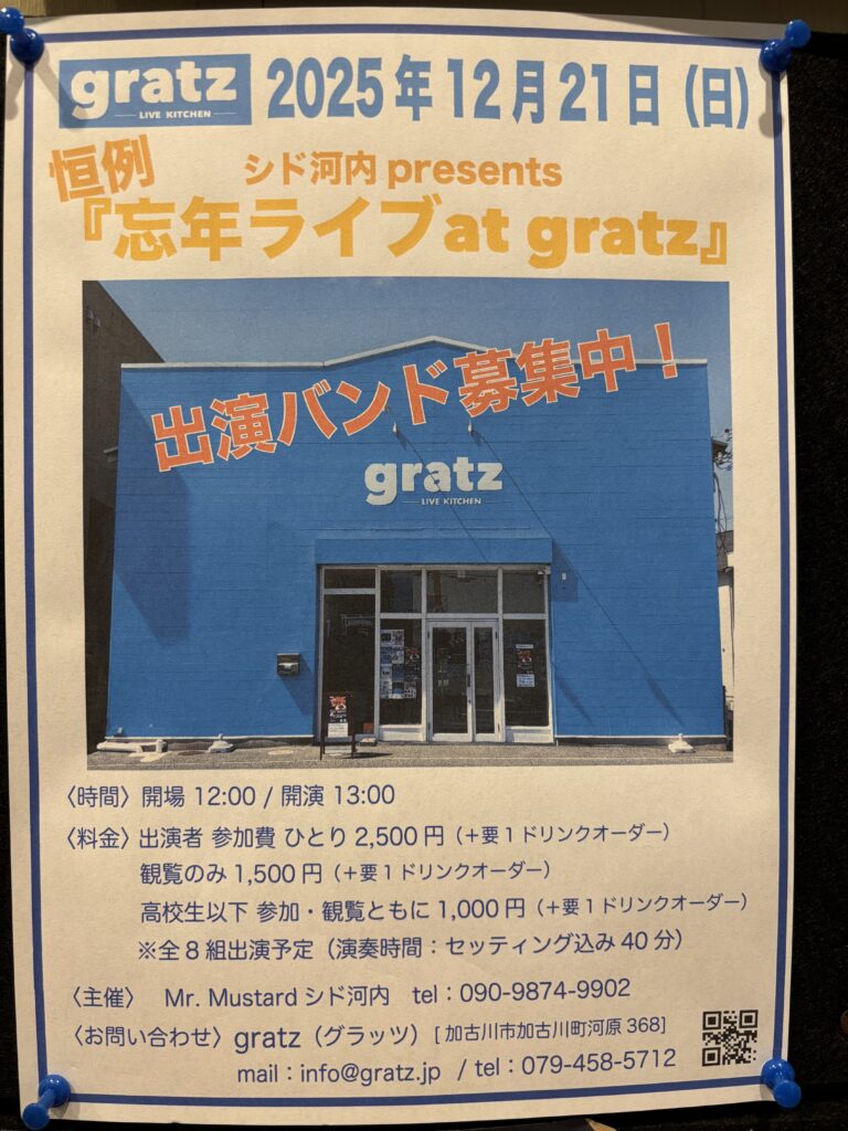 2025年12月21日(日)シド河内presents『2025忘年ライブ at gratz』